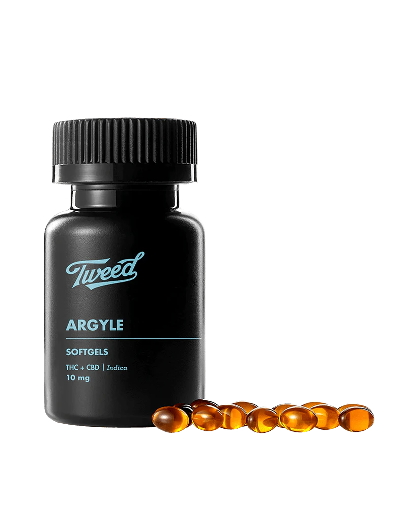 High THC with even higher CBD – Tweed Argyle softgels are made from a terpene-inclusive cannabis extract, infused into non-GMO, coconut-derived MCT oil. These 10mg THC softgels include a side of 12mg CBD, for a uniquely balanced cannabis experience from your friends at Tweed.