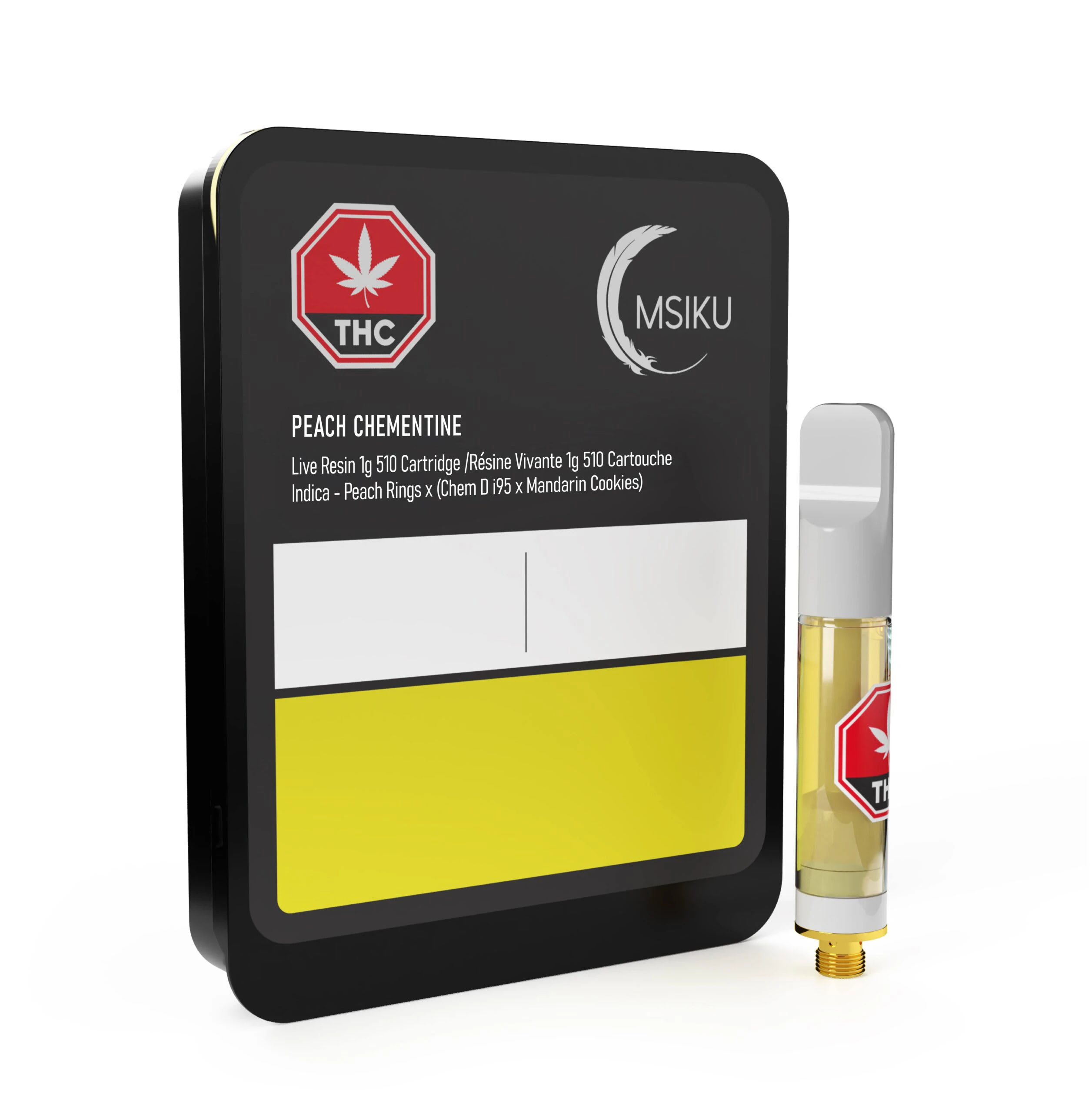 A true-to-flower experience in the convenience of a 510 cart. A tasty mix carefully chosen by the experts at MSIKU, Peach Chementine combines the citrusy sweetness of fragrant peaches, fuel, and clementines. Sought after by cannabis connoisseurs for its taste and aroma, this indica strain is a descendant of the rare Peach OG lineage with Cookies. Crafted from AAAA indoor flower, in small batches, this craft cannabis provides a synergy between cannabinoids and terpenes for the ultimate entourage effect.