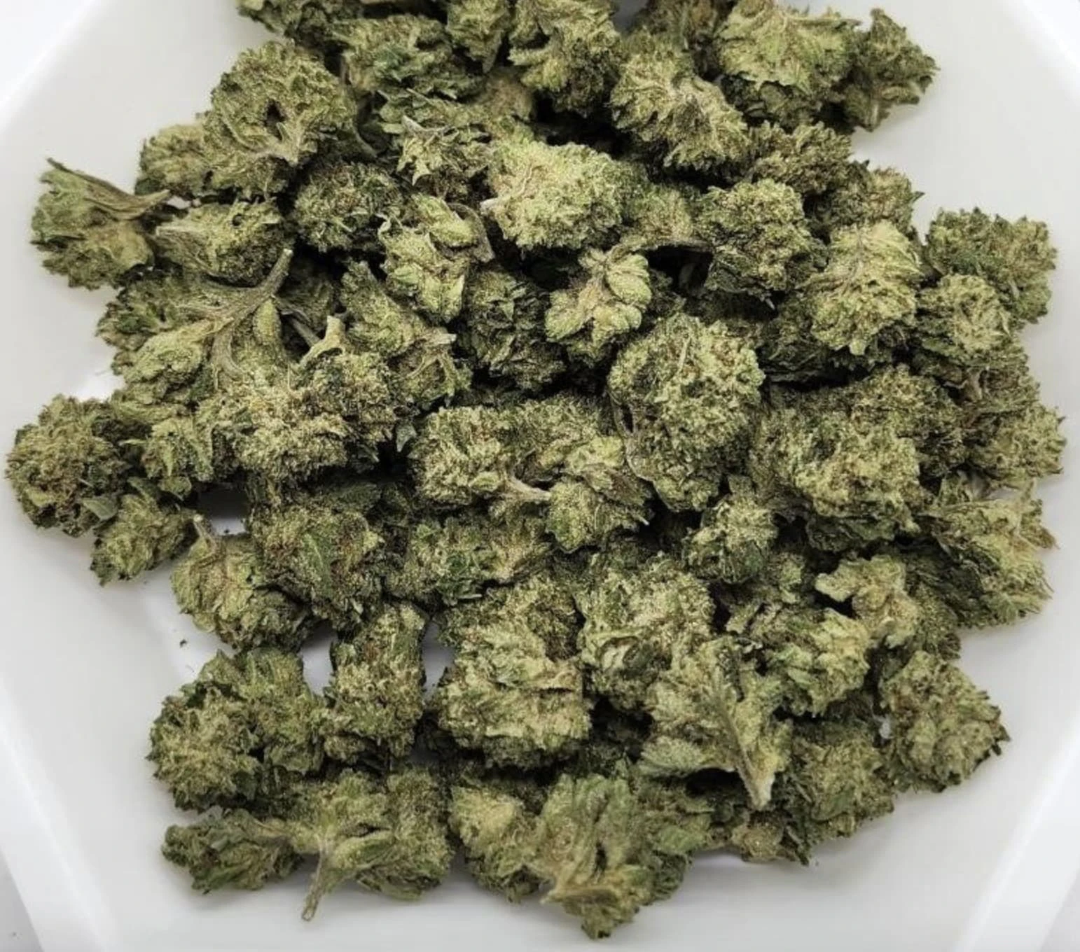 Sativa cultivar with green and purple buds coated in trichomes. It features sweet berry and earthy aromas with a fruity, spice-like flavor.
