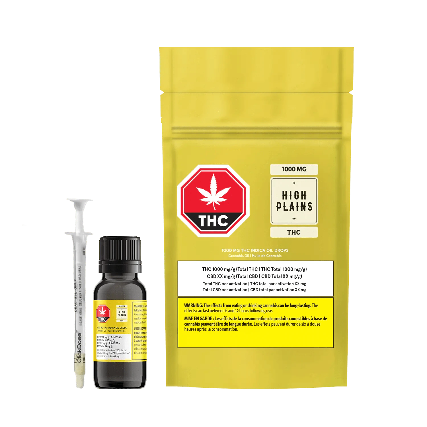 High Plains 1,000 mg Balanced Oil Drops feature organic hemp oil infused with full spectrum THC extracts (RSO) for a true all cannabis oil. Our high potency formula provides 1,000 mg of THC in every bottle. A click dose syringe and adapter are included with every bottle.
