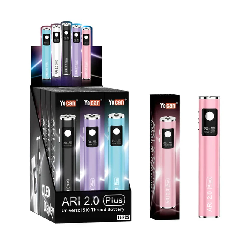 The Yocan ARI 2.0 Plus features a robust 900mAh battery, making it the most powerful option in the ARI 2.0 series. Its variable voltage settings and USB-C fast charging offer extended, customizable sessions. With a universal 510-thread connection, it's built for users who want peak performance and longer-lasting power on a single charge.